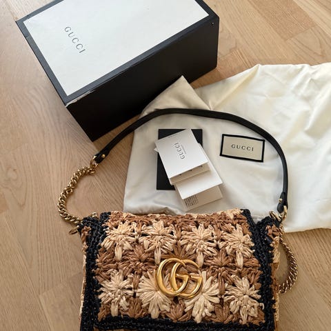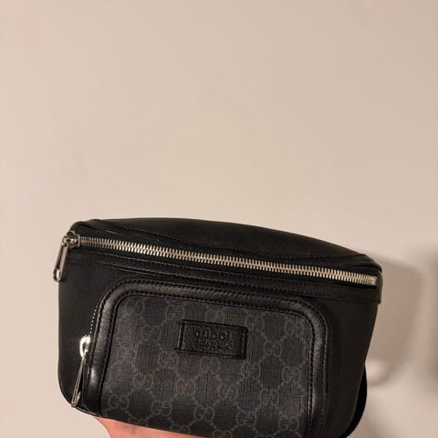 Lekker belt bag fra Gucci med ikonisk GG monogram mønster. Produsert i Italia. Laget av canvas med mørkebrune skinndetaljer. Hardwaret er i gun metal. Innsiden er fôret og har én innvendig lomme.
