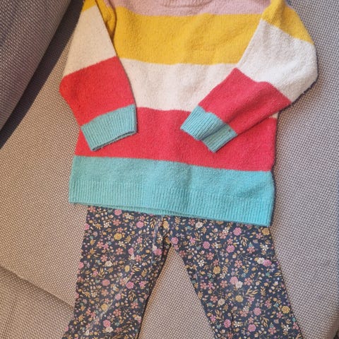 Klespakke str 86-92. Ulike merker, noen franske. 17 plagg: 8 bukser, 2 poloskjorter, 2 kortermede t-skjorter, 2 langermede t-skjorter, 2 hettegensere, 1 fleecevest.