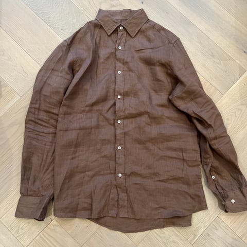 Grågrønn lin skjorte. Aldri brukt da den ble litt stor