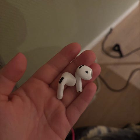 Men min nye høyre (R) Apple AirPod 4-ørepropp vil ikke tilkoble seg sammen med min venstre (L) Apple AirPod 4-ørepropp eller mitt Apple AirPods 4-ladeetuiet som hører sammen med det men jeg leste på internett at det går ann å nullstille begge Apple AirPods 4-øreproppene og få begge Apple AirPods 4-øreproppene og Apple AirPods 4-ladeetuiet til å fungere sammen.