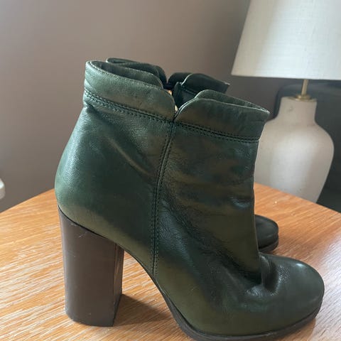 Nydelig skolert fra SeeByChloe. Hel skinn utenpå og inni, fargen er sort. Størrelse 37, normal på str. Brukt innendørs kun 3 ganger. Veldig gode på foten, dessverre så blir de for høye til meg. Ny pris var 7000. Selges for 3000. Høyde på hel 8 cm.