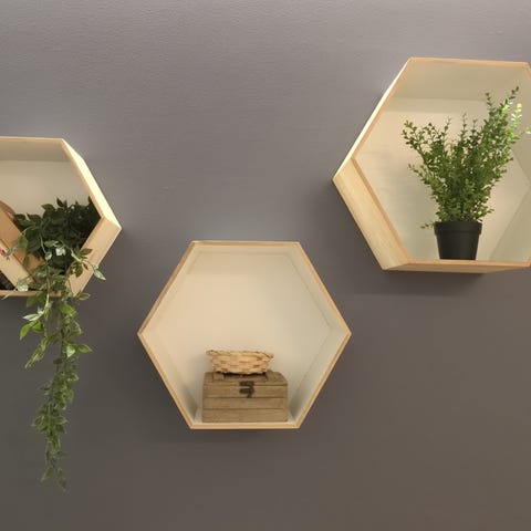 Vegg hylle som etterligner DMT molekylet