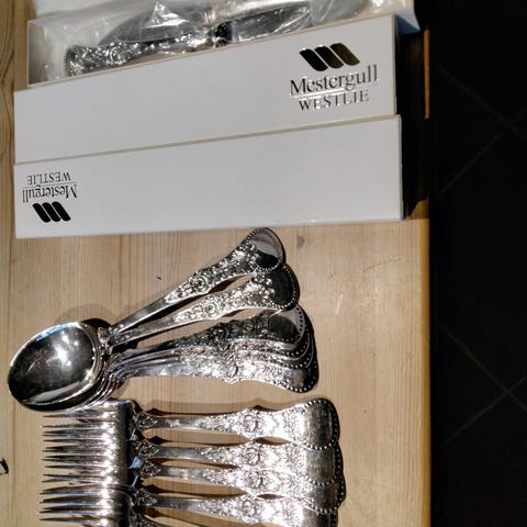 To uåpnede esker med rosegull bestikk, 24 deler