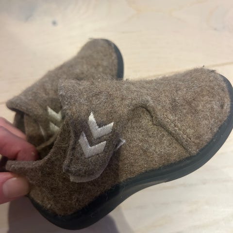 Tøfler / innesko i ull fra hummel. Str 28. gummisåle. Mangler innersålen i den ene tøffelen.