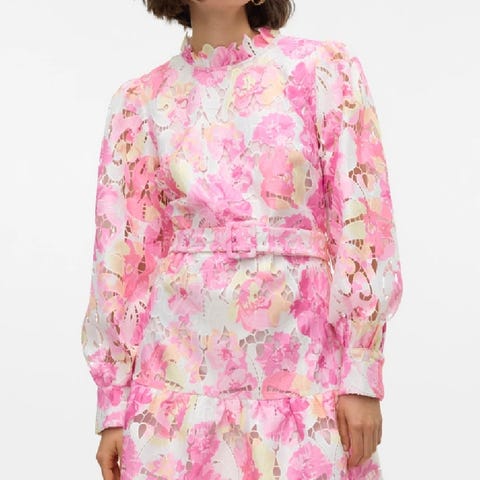 Selger en utrolig vakker kjole i nydelig flerfarget blomsterprint fra Ellos.