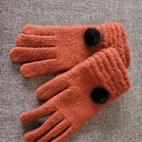 Selger disse røde, eksentriske hanskene. Tror ikke pelsen er ekte. Har justerbar gummistrikk på siden. One size