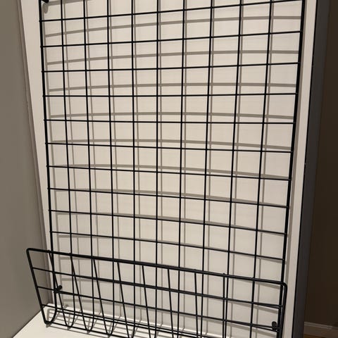 Pent brukt oppslagstavle i metall/mesh med praktisk hylle fra House Doctor.