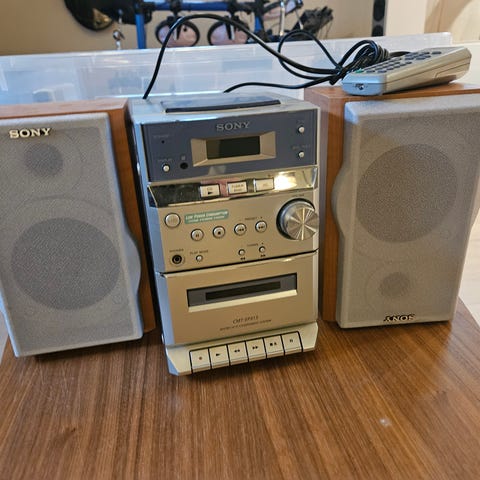 Selger gammelt Sony stereo anlegg, bruksmerke bak på høytalerne. Ellers funker det som det skal! Vet ikke hvilket år det ble kjøpt.