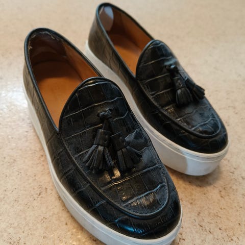 Selger disse fine mokkasiner i skinn fra Unisa. Er kun brukt 1 gang i tørt vær, har hel med strikk som dessverre er litt for stram for meg. Kjøpt på nettet vår 2025, kostet rundt 1100 på salg.
