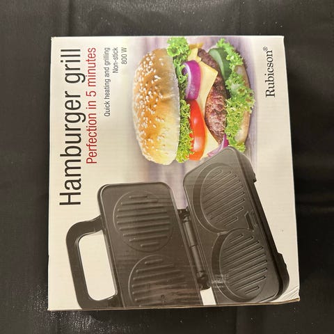 Selger en ubrukt hamburgergrill fra kvalitetsmerket OBH Nordica.