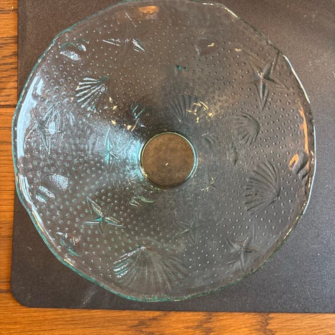 Laget av Westmoreland Glass Company i deres Argonaut Shell-mønster.