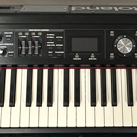 Selger et Roland Piano Plus 70. Høyttalerne spraker litt når man endrer volum, men spraker ikke når man begynner å spille. Pianoet er ellers klart til bruk. Pianostativ følger med i prisen.