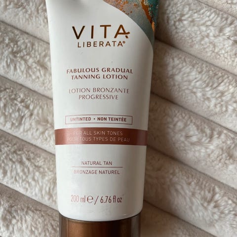 Vita Liberata Fabulous Gradual Tanning Lotion er en selvbruningskrem med en naturlig brunfarge. Den kommer i en 200ml tube og er designet for å gi en gradvis brunfarge. Kremen passer for alle hudtyper og gir en jevn og naturlig glød+spesiell hanske for påføring av brunfarge.