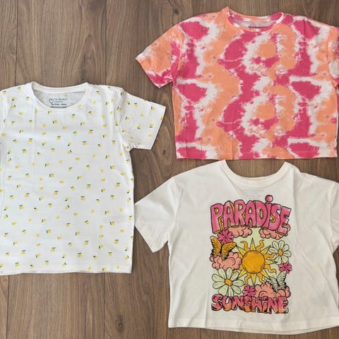 To t-skjorter fra HM og Cubus, i str. 134/140.