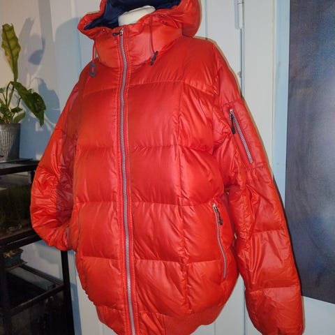 Vintage, rød Skogstad anorakk/skijakke. Str.: 50, og den passer som en M. Den er meget pent brukt, fremstår nesten som ubrukt, er i veldig god stand. Kjekke detaljer: stor lomme til begge hender, lukkes med knapp. Særdeles romslig lomme midt p å brystet, lukkes med glidelås som ligger gjemt under en hempe. Snøring nederst, i livet og i hetten. Hetten har pels, som kan tas av med knapper. Skogstad-logo på venstre overarm. 4 knapper i halsen. 'Beverhale'-stropp som kan tas mellom beina og festes med knapp.