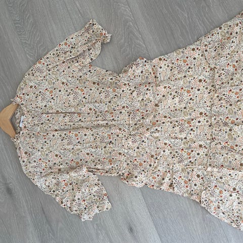 Lite brukt bluse fra Ganni i str 34. Blomstermønster. Gjennomsiktige ermer og glidelås i ryggen.