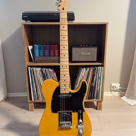 Selger en pent brukt Squier Telecaster i fargen Butterscotch Blonde. Fungerer fint og er behagelig å spille på.