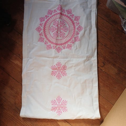 Rosa pute m/ tynne blanke "skjell" 40x 40. Glidelås .
