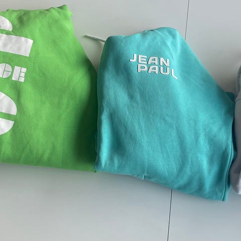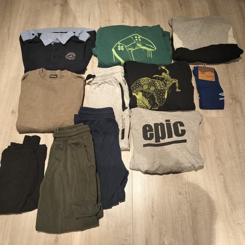 Alt Jean Paul utenom dongeri buksen str 30/30 brukt en gang og en genser. Shorts str M, resten er str L og XL