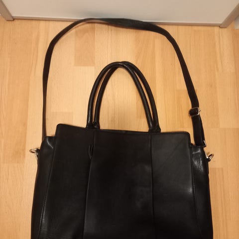 Ryggsekk til damer, ekte skinn, mye plass inne, elegante. Farge: svart