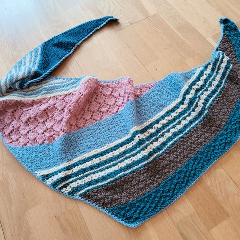 Sjal strikket i håndfarget garn fra Ulltøsene.