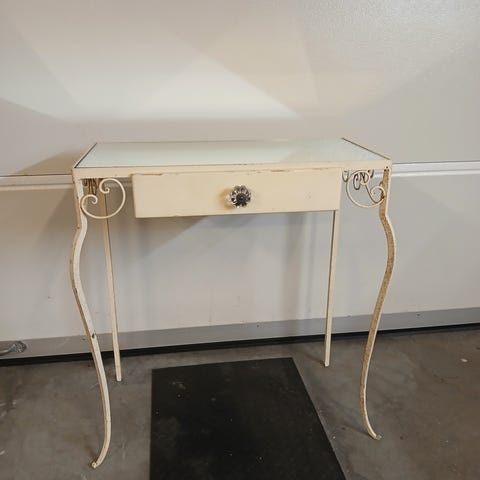 Trillebord i metall med glassplater