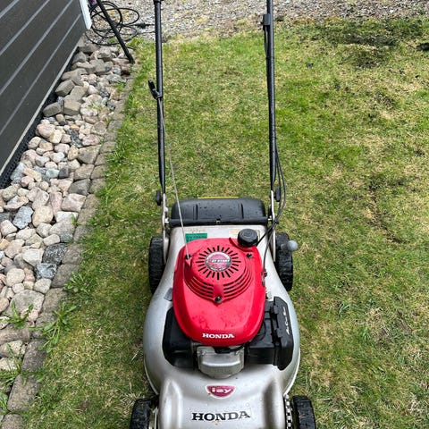 Masport gressklipper starter og går nylig renset forgasser og byttet membranen der. Skiftet start snor. Den har Hjuldrift men vaieren må skiftes da den har sviktet. Man kan fortsatt brukes til å klippe gress. Oppsammler følger med.