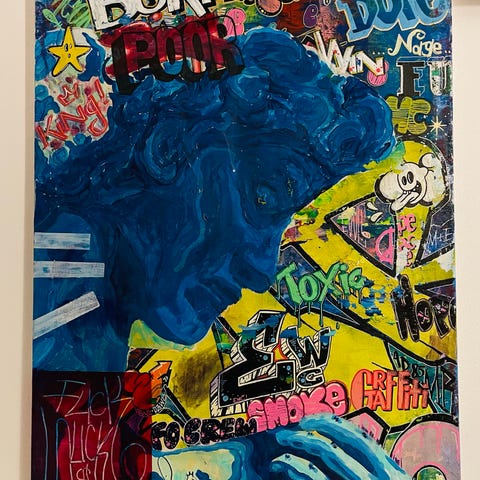 Litografi. Trykket er signert maler, grafiker og billedhugger Bent Karl Jacobsen 69. Han er regnet som en dansk etterkrigs- og samtidsmaler (1934 - 2004).