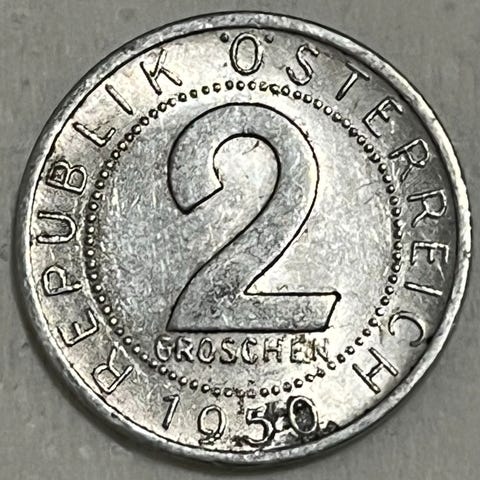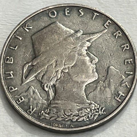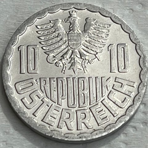 Dette er en 10 groschen mynt fra Østerrike, datert 1925. Mynten har en profil av en kvinne med hatt og fjell i bakgrunnen, med teksten “REPUBLIK ÖSTERREICH” rundt kanten. På baksiden er verdien “10 GROSCHEN” og året “1925” preget, omgitt av en dekorativ krans.