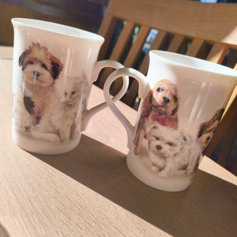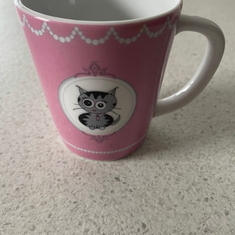 Søt kopp/krus med kattemotiv og gullkant