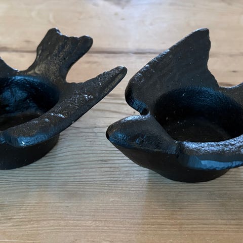 2 stk vakre eldre håndlaget lysestaker i keramikk 💚 Signert