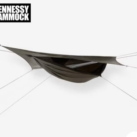 Selger en tilnærmet ubrukt Dream Hammock Wingspan hengekøye i 1.7 MTN stoff. Svart body, integrert myggnett og quilt hooks til å feste underquilt i samt oppbevaringsnett i det ene hjørnet laget av Dream Hammock.