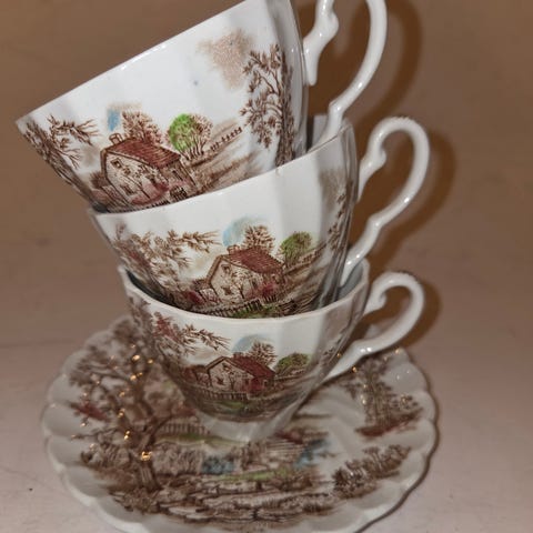 Selger 7 kaffekopper i porselen fra det engelske merket Johnon Bro.
