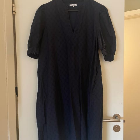 Fantastisk kjole i elastisk stoff Faller tungt og sitter pent . Lett å pynte både opp og ned Fin med dressjakke eller annen jakke Ny pris 2500,-
