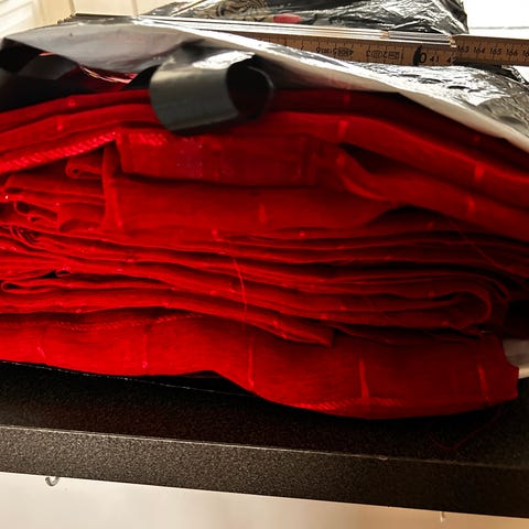 Obs grå og brune solgt og de korte røde gardinene!! Bare 2 lange røde og 4 hvite er igjen.