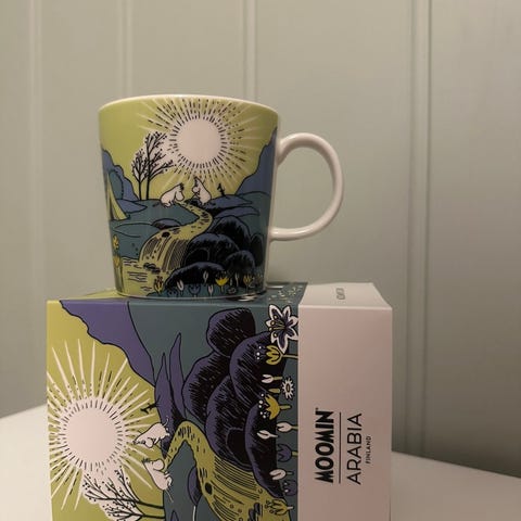 Helt ny kopp i eske med merkelapp fra Moomindagen 2024.