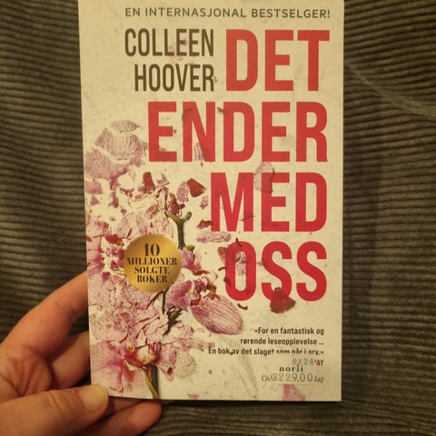 Selger "It Ends With Us" av Colleen Hoover – en internasjonal bestselger som har rørt millioner av lesere. Dette er en paperback-utgave på engelsk, i veldig god stand.