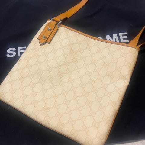 Kjøpt brukt. Slitasje på hjørnene (se bilde) Synes lite da det er nederst på vesken.