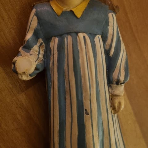 Jentefigurer. Ingen bruksmerker, kun et lite skår nederst på den grønne kjolen, venstre side av den største jenta. Samlet kr 400, eller kr 300 pr stk.