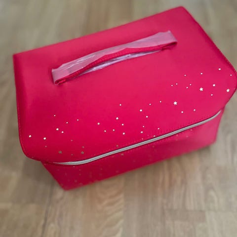 Helt ny og aldri brukt. Rød liten oppbevaring man kan ha div ting oppi. Ikke noe spesielt merke, fra Biltema.