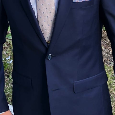 Pent brukt konfirmasjonsdress som er brukt to ganger fordi jeg vokste ut av den fort. Dette er da årsaken til at jeg selger. Det følger med både jakke og bukse, samt et tørkle i jakken