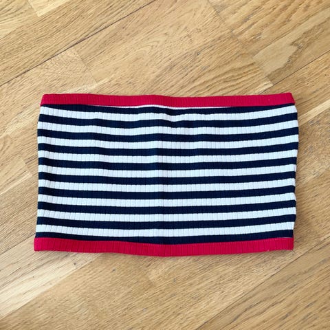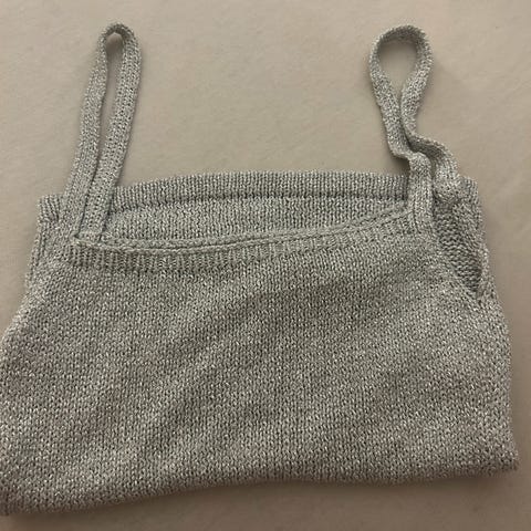 Knøttliten topp som var brukt i kort tid før den ble for liten. Alle lapper og vaskeanvisninger er klipt av, men tipper den er i polyester og tåler 30 grader.