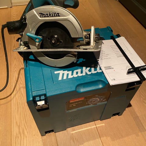 Ser på bilde. Makita 5705 R 190 mm blad med 1400 watt i kofferten og tilbhør som bruker for styreskinne. Funker bra uten problem.. Liten Makita sirkelsag med 1 Batteri 3 Ah funker utmerkt. Selger alt uten garanti.