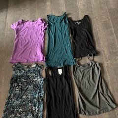 En klespakke med kjoler og t skjorte: