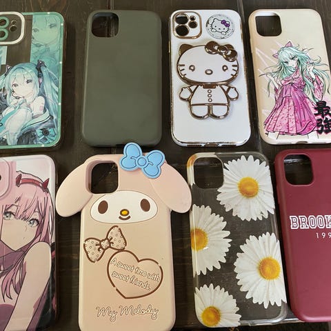 2 av di e pent brukt til ikke brukte, den lilla e den eineste som e mes brukt som du kan se på bilde. Den har kun farga etter å ha blitt brukt, ikke noen skraper på den. Den svarte har litt skraper men di e ca ikke synlige i meste lys synes eg. Ca 15,2?x7,5x0,6cm inni dekselet. Trur eg hadde di te iphone 11