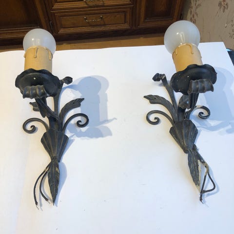 To elegante vegglamper – "blomstermotiv" i glass og dekorativ metallramme