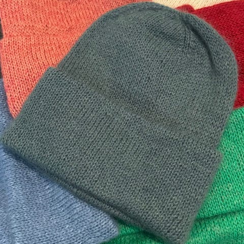 Selger denne nydelige strikkede lua, slow fashion😊 Har 1 stykk i denne fargekombinasjonen ferdig strikket og klar!