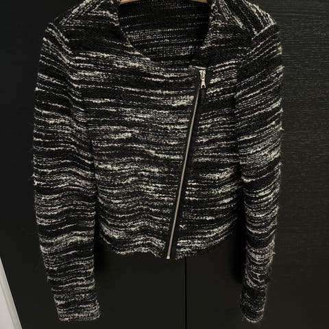 Tynn jakke fra Sand. Svart. Størrelse er ikke påført, men den passer som er S. Lommer til begge hender foran, kan snøres i livet og strammes fra begge sider..Kan også brukes som genser/cardigan.