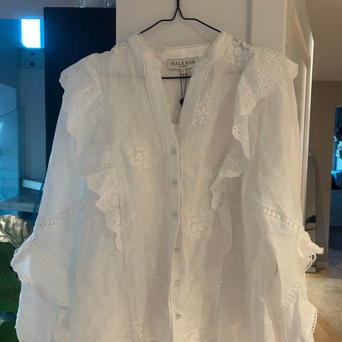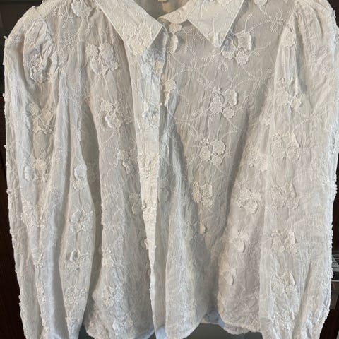 Flott skjorte/bluse fra ONLY selges. Kun prøvd på. Blonderstoff og knapper på forsiden og i ermer.
