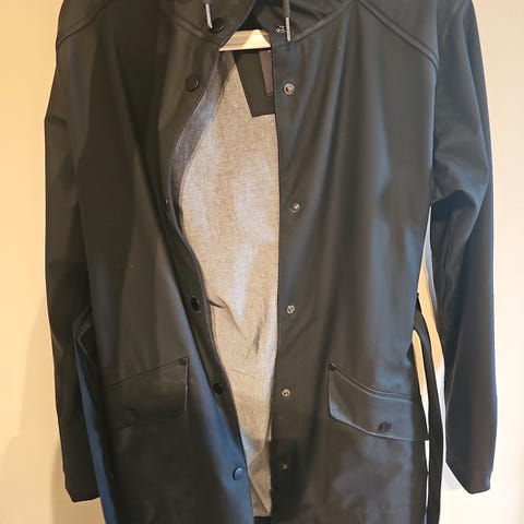 Knapt brukt regnjakke str S, fra cubus. Romslig i str. Myk og god. Veldig fin på. 250kr